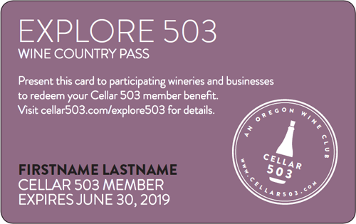 And, most exciting, our new club member benefits card, the Explore 503 wine country pass...